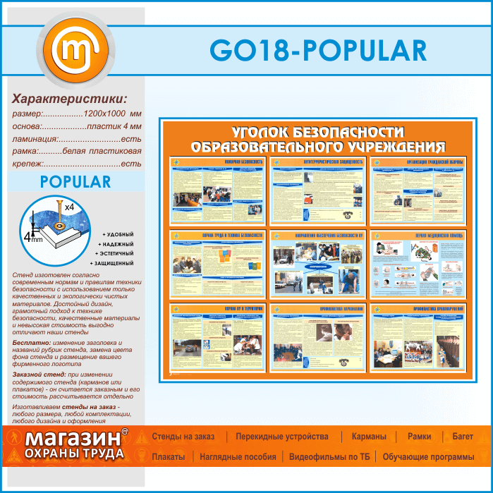 Стенд «Уголок безопасности образовательного учреждения» (GO-18-POPULAR) в Новокузнецке купить