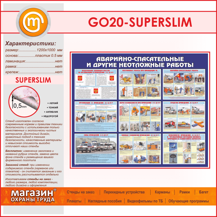 Стенд «Аварийно-спасательные и другие неотложные работы» (GO-20-SUPERSLIM) в Новокузнецке купить