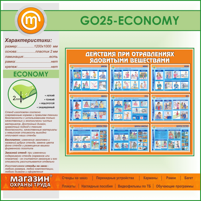 Стенд «Действия при отравлении ядовитыми веществами» (GO-25-ECONOMY) в Новокузнецке купить