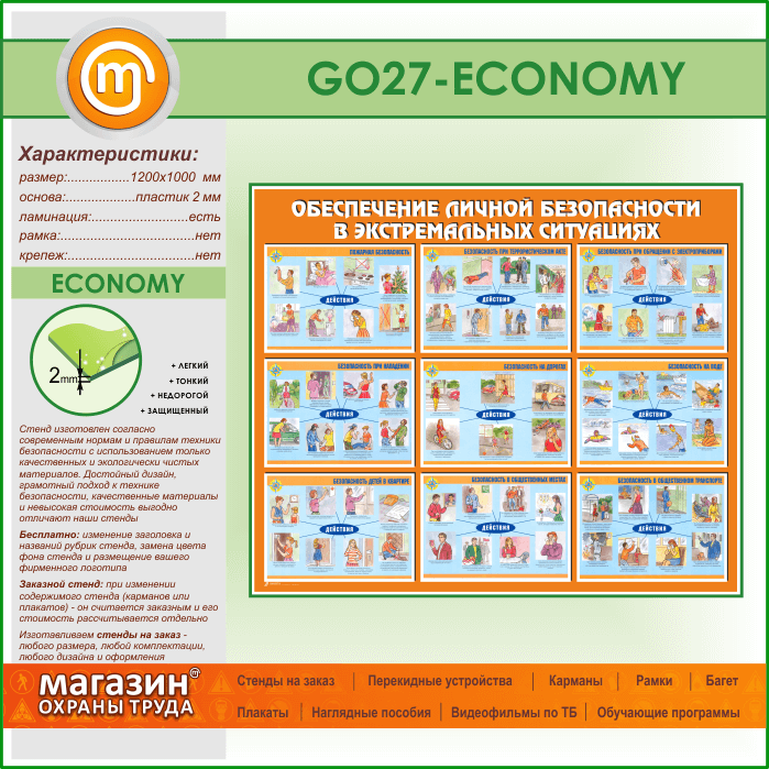Стенд «Обеспечение личной безопасности в экстремальных ситуациях» (GO-27-ECONOMY) в Новокузнецке купить