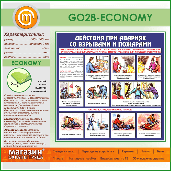 Стенд «Действия при авариях со взрывами и пожарами» (GO-28-ECONOMY) в Новокузнецке купить