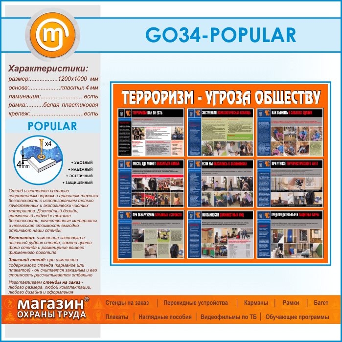 Стенд «Терроризм - угроза обществу» (GO-34-POPULAR) в Новокузнецке купить