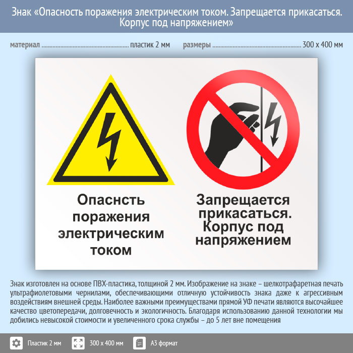 Знак «Опасность поражения электрическим током. Запрещается прикасаться. Корпус под напряжением», КЗ-47 (пластик, 400х300 мм) в Новокузнецке купить