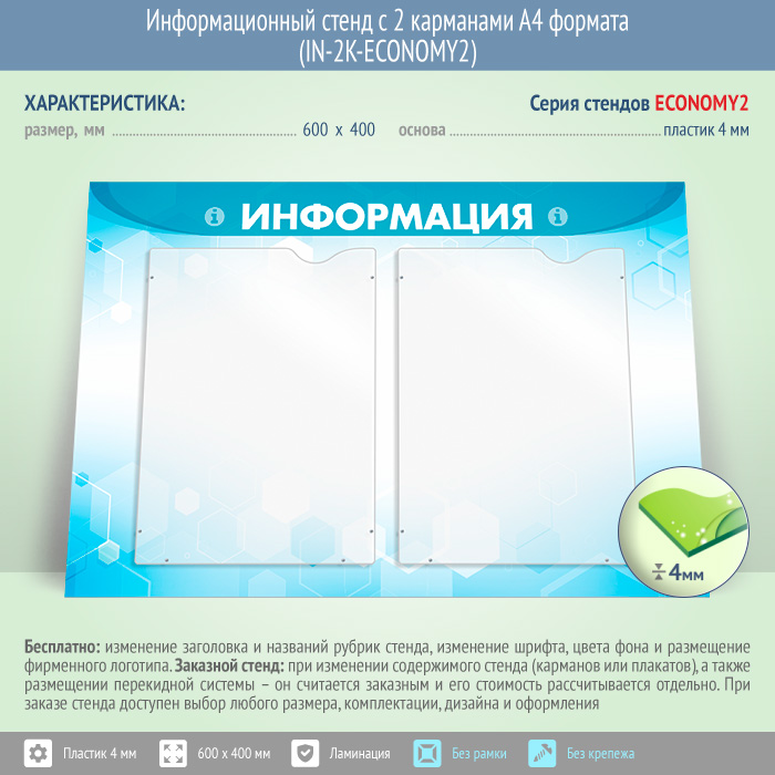 Информационный стенд с 2 карманами А4 формата (IN-2K-ECONOMY2) в Новокузнецке купить
