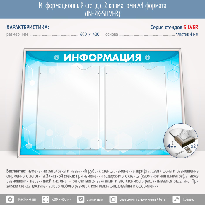 Информационный стенд с 2 карманами А4 формата (IN-2K-SILVER) в Новокузнецке купить
