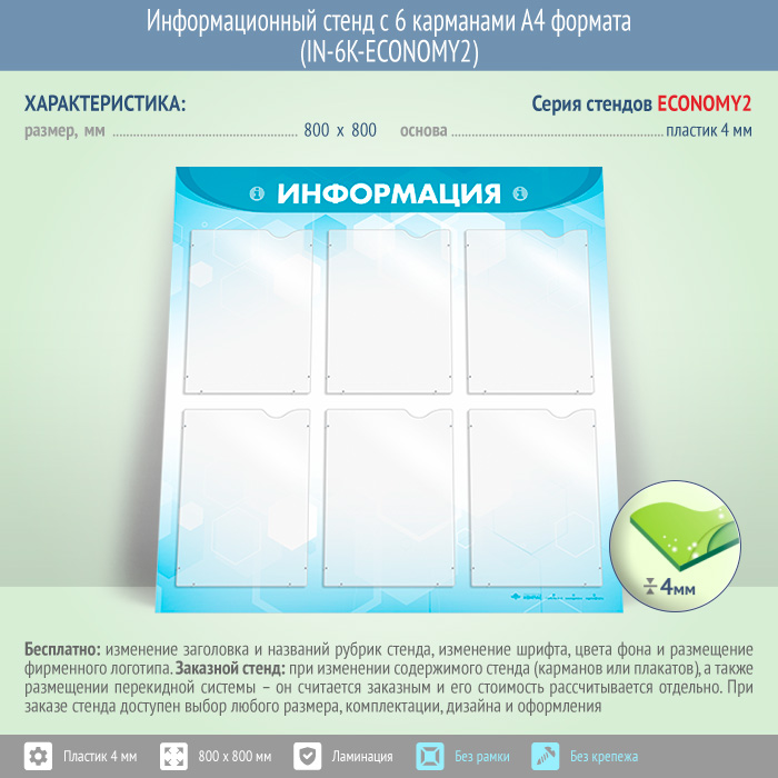 Информационный стенд с 6 карманами А4 формата (IN-6K-ECONOMY2) в Новокузнецке купить