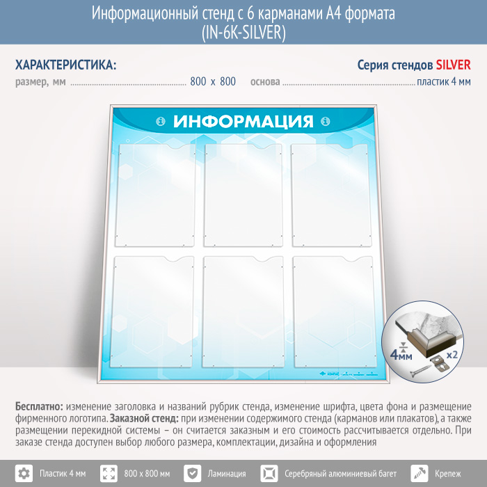 Информационный стенд с 6 карманами А4 формата (IN-6K-SILVER) в Новокузнецке купить