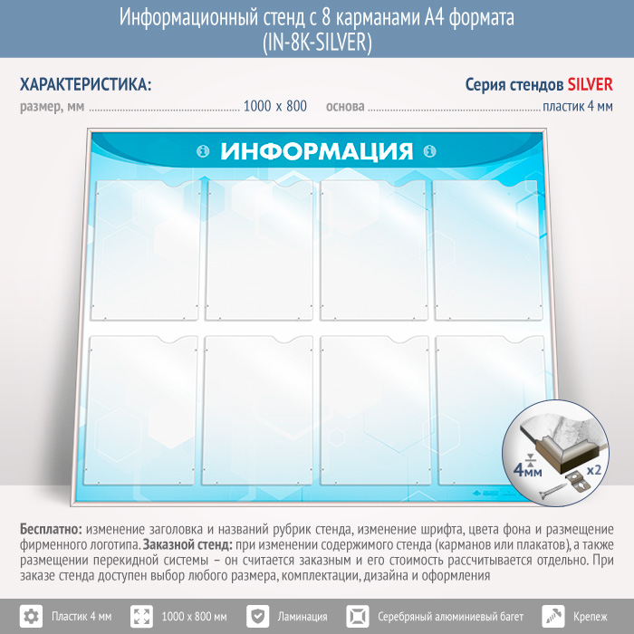Информационный стенд с 8 карманами А4 формата (IN-8K-SILVER) в Новокузнецке купить
