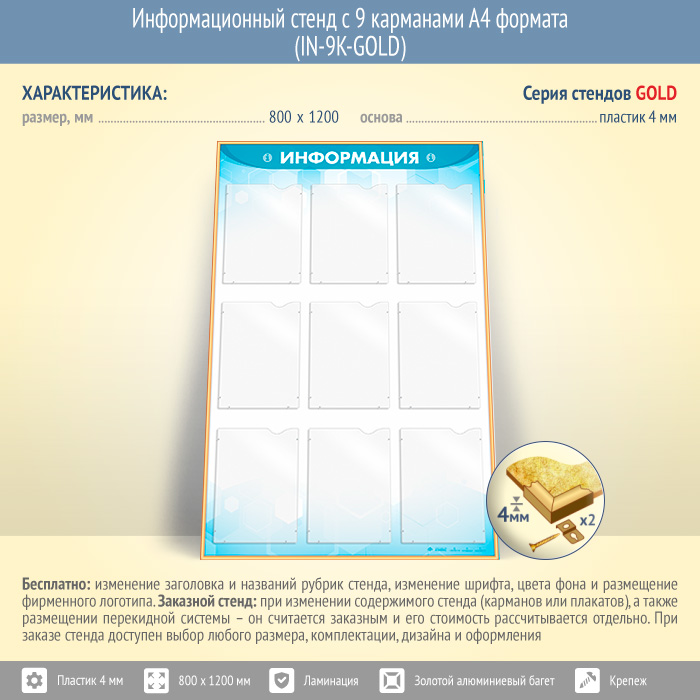 Информационный стенд с 9 карманами А4 формата (IN-9K-GOLD) в Новокузнецке купить