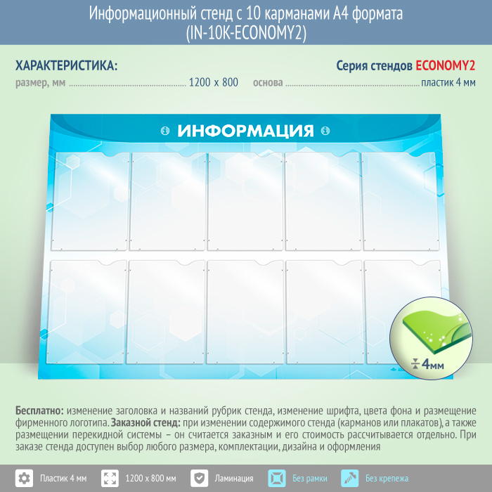 Информационный стенд с 10 карманами А4 формата (IN-10K-ECONOMY2) в Новокузнецке купить