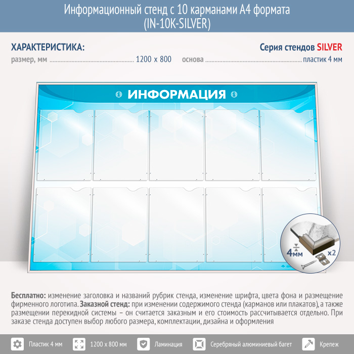 Информационный стенд с 10 карманами А4 формата (IN-10K-SILVER) в Новокузнецке купить