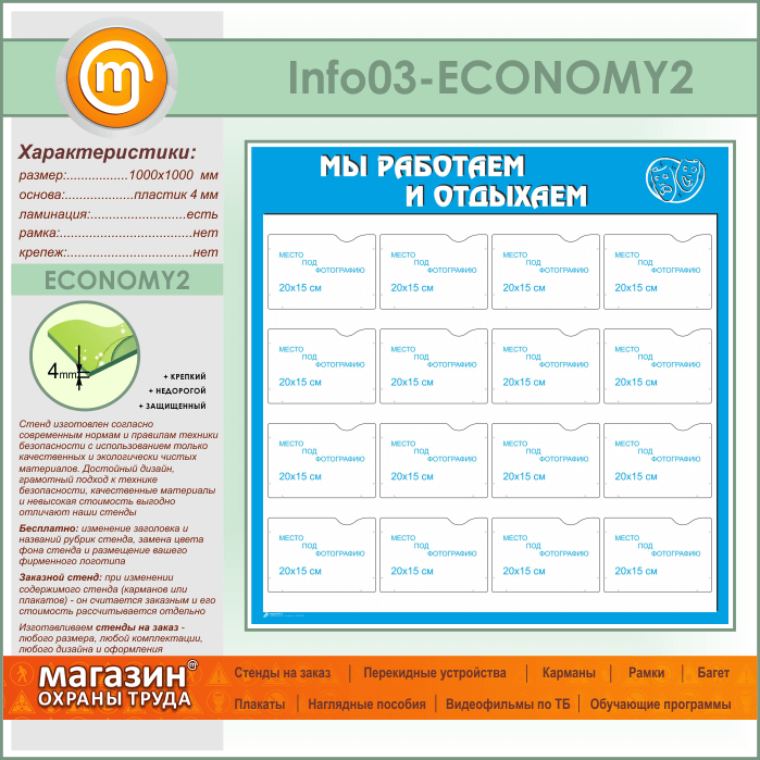 Стенд «Мы работаем и отдыхаем» с 16 карманами А5 формата (IN-03-ECONOMY2) в Новокузнецке купить