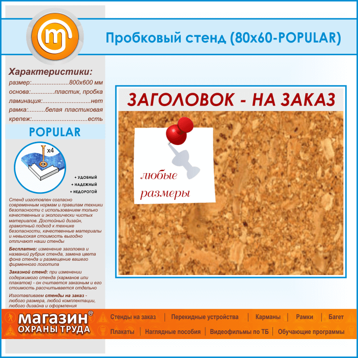Пробковая доска с заголовком, 80х60 см (IN-06-POPULAR) в Новокузнецке купить