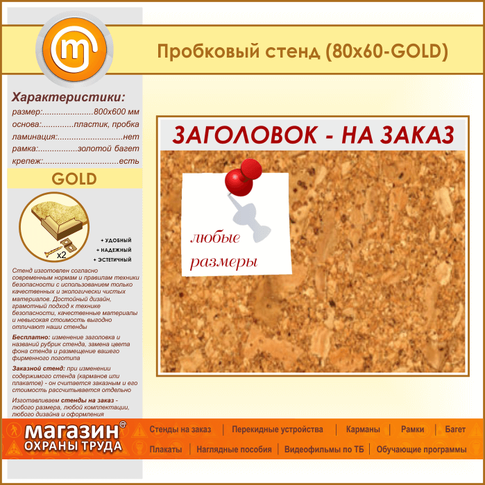 Пробковая доска с заголовком, 80х60 см (IN-06-GOLD) в Новокузнецке купить