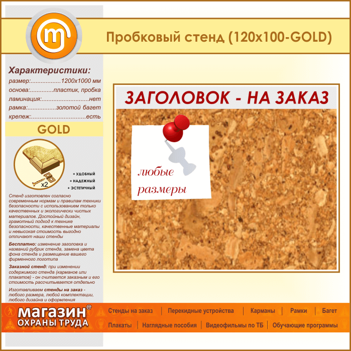 Пробковая доска с заголовком, 120х100 см (IN-06-GOLD) в Новокузнецке купить