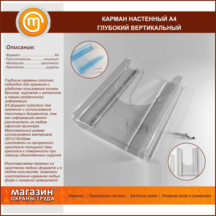 Карман настенный А4 объемный вертикальный в Новокузнецке купить