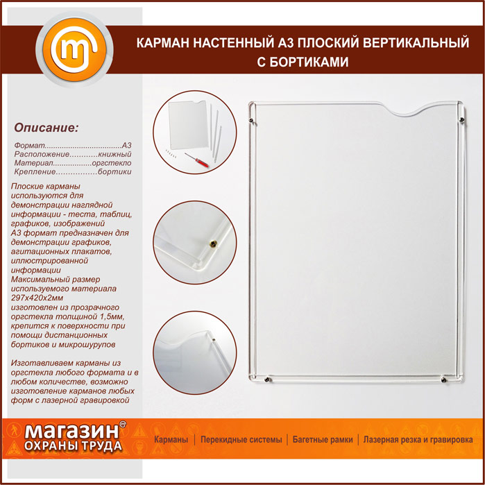 Карман настенный А3 плоский вертикальный с бортиками в Новокузнецке купить