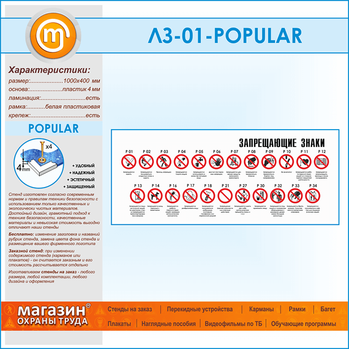 Стенд «Запрещающие знаки» (LZ-01-POPULAR) в Новокузнецке купить