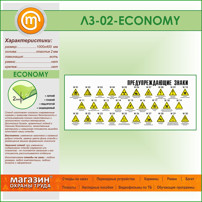 Стенд «Предупреждающие знаки» (LZ-02-ECONOMY) в Новокузнецке купить