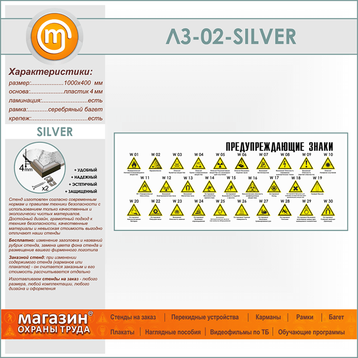 Стенд «Предупреждающие знаки» (LZ-02-SILVER) в Новокузнецке купить