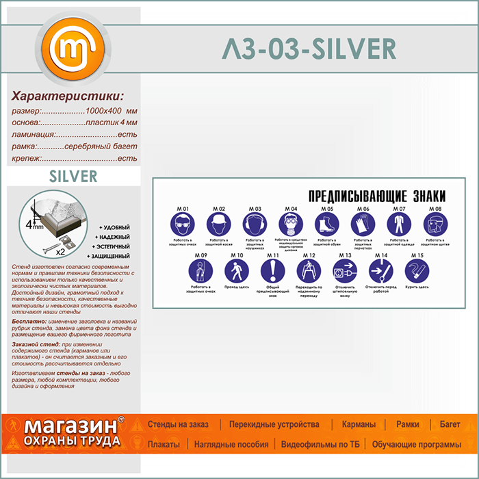 Стенд «Предписывающие знаки» (LZ-03-SILVER) в Новокузнецке купить