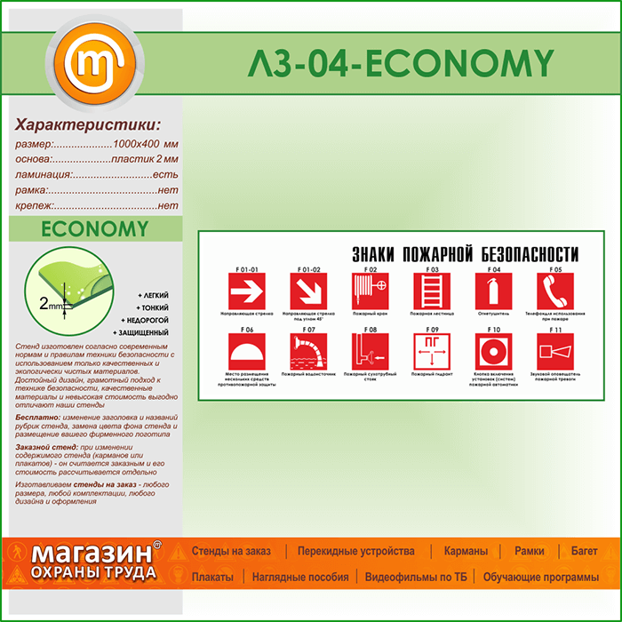 Стенд «Знаки пожарной безопасности» (LZ-04-ECONOMY) в Новокузнецке купить