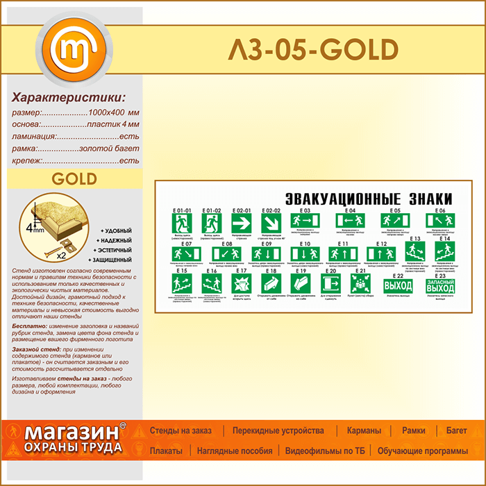 Стенд «Эвакуационные знаки» (LZ-05-GOLD) в Новокузнецке купить