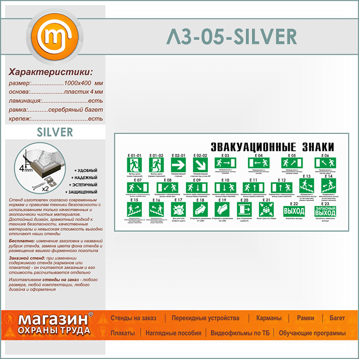 Стенд «Эвакуационные знаки» (LZ-05-SILVER) в Новокузнецке купить
