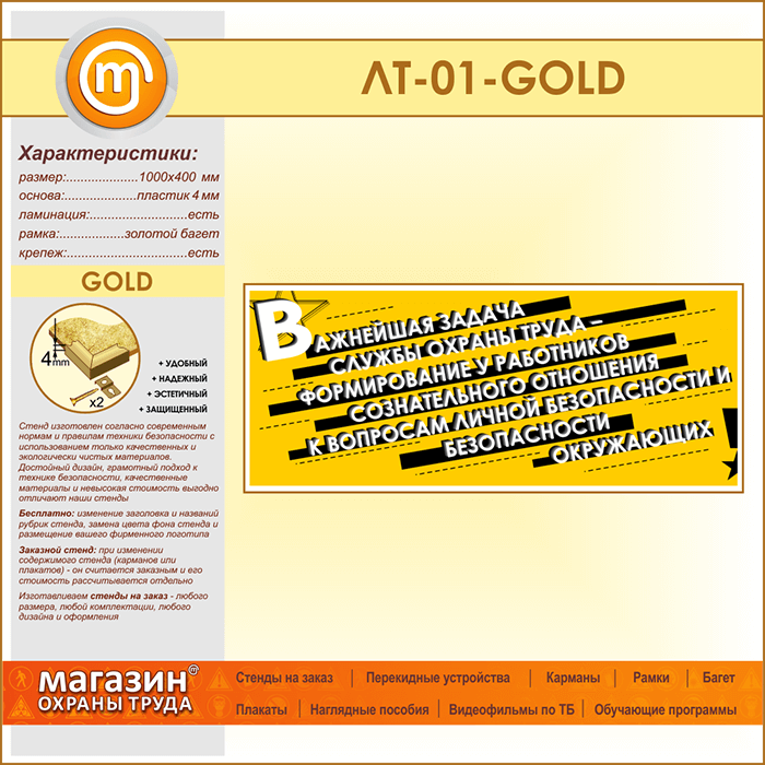 Лозунг «Важнейшая задача службы охраны труда...» (LT-01-GOLD) в Новокузнецке купить