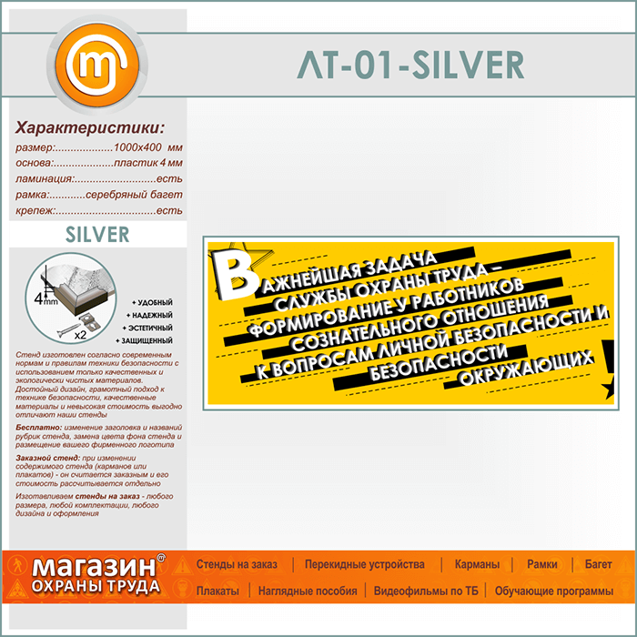 Лозунг «Важнейшая задача службы охраны труда...» (LT-01-SILVER) в Новокузнецке купить