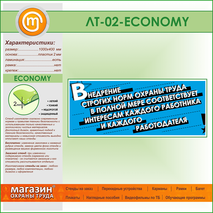 Лозунг «Внедрение строгих норм охраны труда...» (LT-02-ECONOMY) в Новокузнецке купить