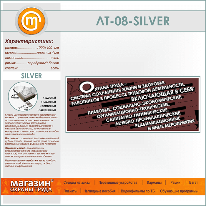 Лозунг «Охрана труда - система сохранения жизни и здоровья...» (LT-08-SILVER) в Новокузнецке купить