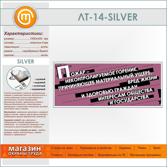 Лозунг «Пожар - неконтроллируемое горение...» (LT-14-SILVER) в Новокузнецке купить