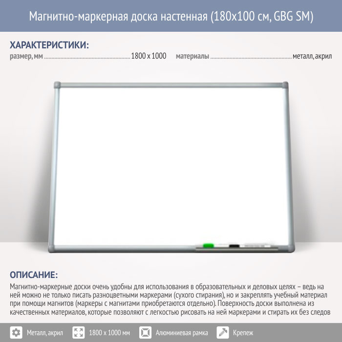 Магнитно-маркерная доска настенная (180x100 см, GBG SM) в Новокузнецке купить