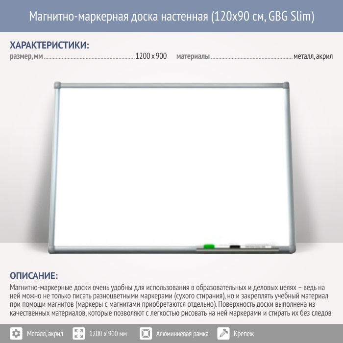 Магнитно-маркерная доска настенная (120x90 см, GBG Slim) в Новокузнецке купить