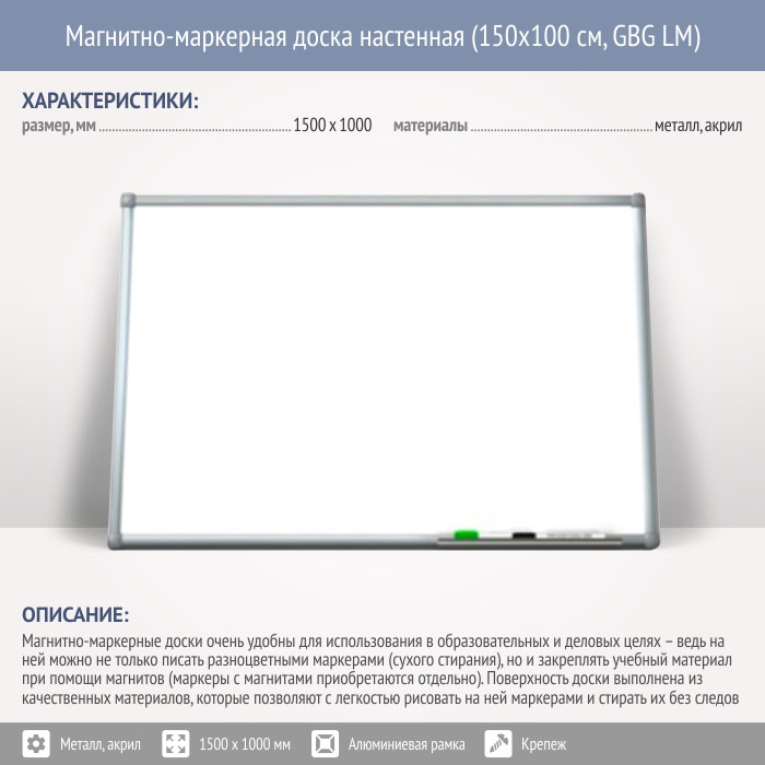 Магнитно-маркерная доска настенная (150x100 см, GBG LM) в Новокузнецке купить