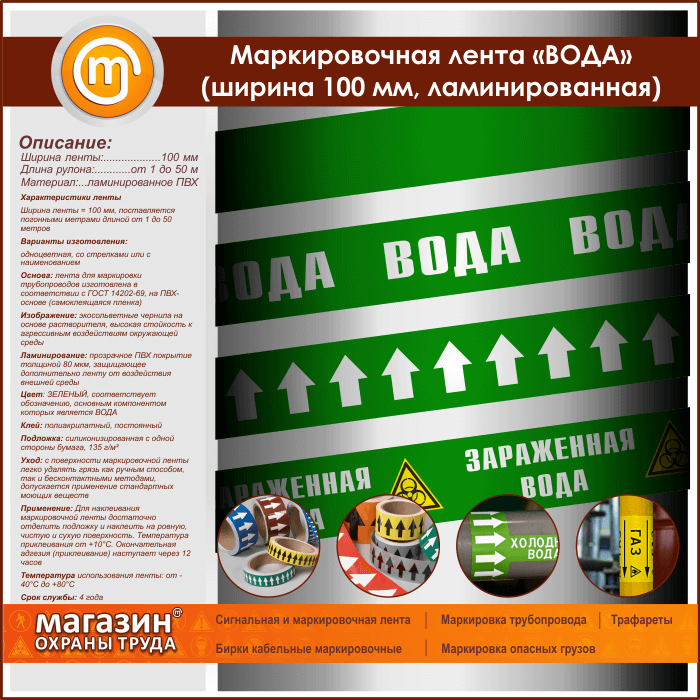Маркировочная лента «ВОДА» (ширина 100 мм, самоклеящаяся плёнка с ламинированием) в Новокузнецке купить