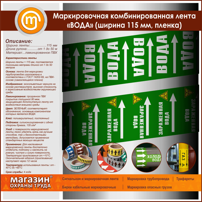 Маркировочная комбинированная лента «ВОДА» (ширина 115 мм, самоклеящаяся плёнка с ламинированием) в Новокузнецке купить