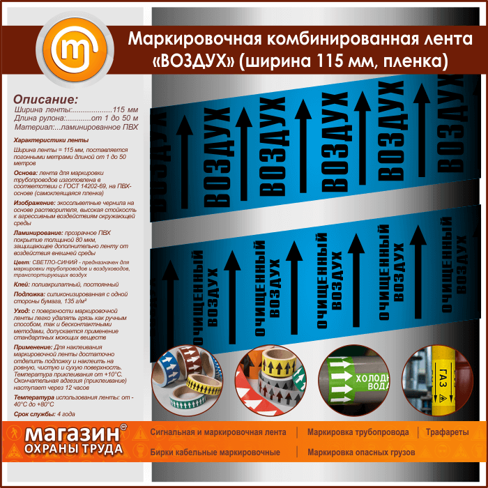 Маркировочная комбинированная лента «ВОЗДУХ» (ширина 115 мм, самоклеящаяся плёнка) в Новокузнецке купить