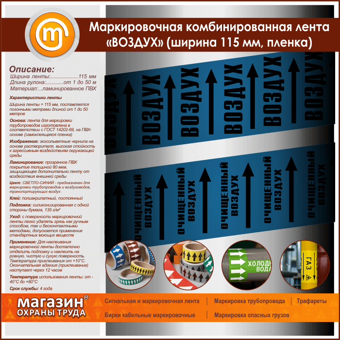 Маркировочная комбинированная лента «ВОЗДУХ» (ширина 115 мм, самоклеящаяся плёнка с ламинированием) в Новокузнецке купить