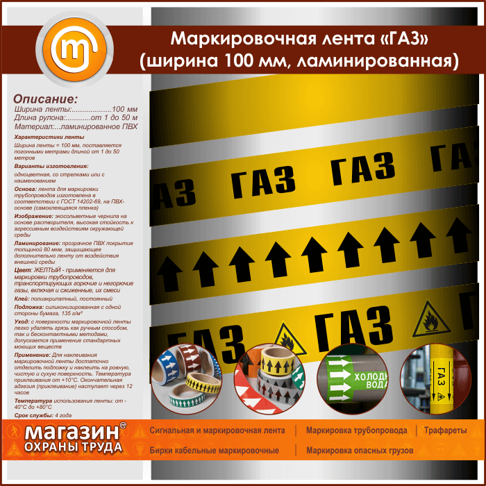Маркировочная лента «ГАЗ» (ширина 100 мм, самоклеящаяся плёнка с ламинированием) в Новокузнецке купить