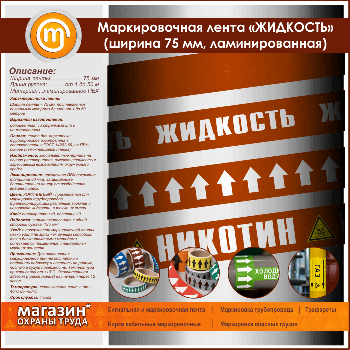 Маркировочная лента «ЖИДКОСТЬ» (ширина 75 мм, самоклеящаяся плёнка) в Новокузнецке купить
