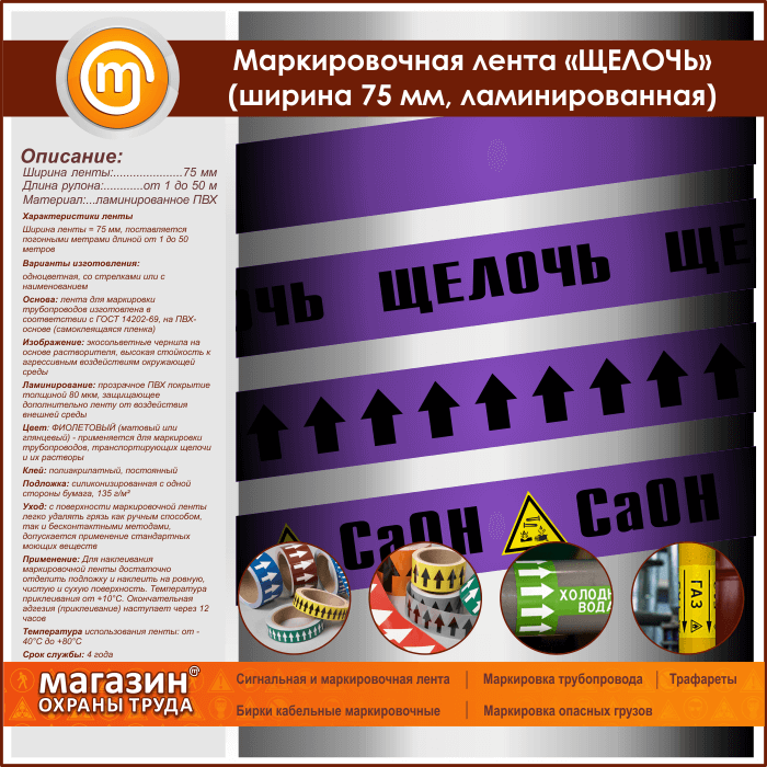 Маркировочная лента «ЩЕЛОЧЬ» (ширина 75 мм, самоклеящаяся плёнка с ламинированием) в Новокузнецке купить