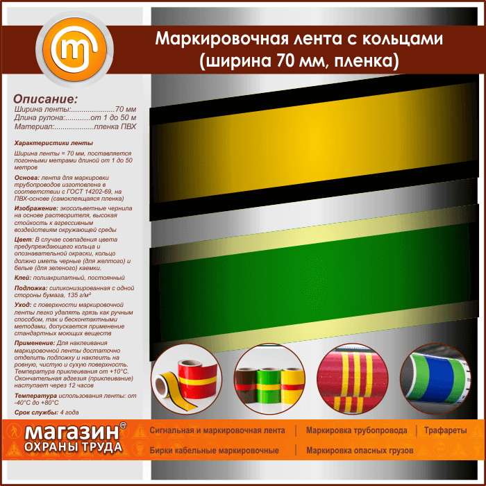 Маркировочная лента с кольцами (ширина 70 мм, самоклеящаяся плёнка) в Новокузнецке купить