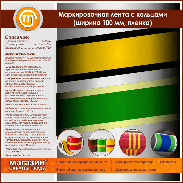 Маркировочная лента с кольцами (ширина 100 мм, самоклеящаяся плёнка) в Новокузнецке купить