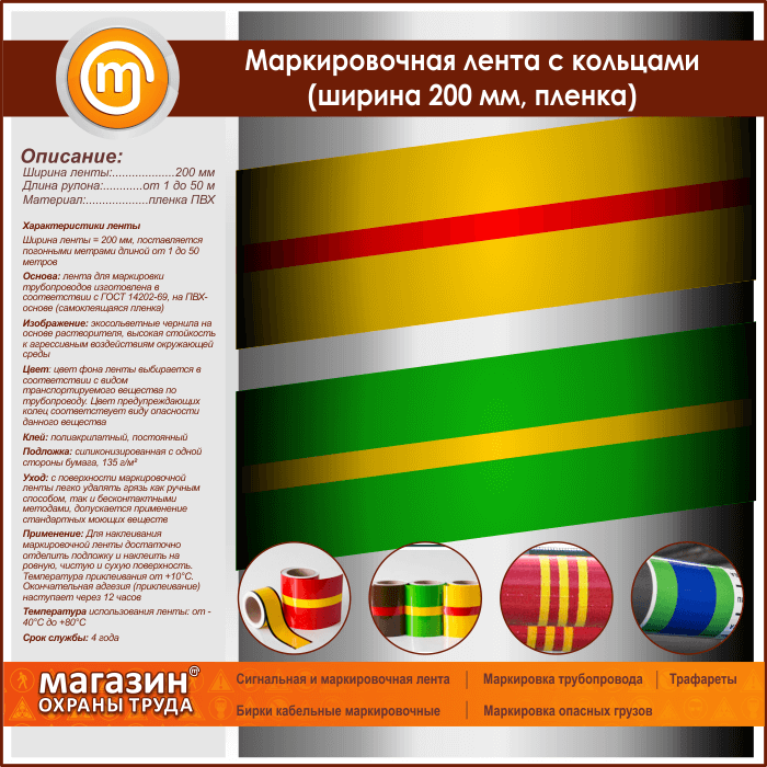 Маркировочная лента с кольцами (ширина 200 мм, самоклеящаяся плёнка) в Новокузнецке купить