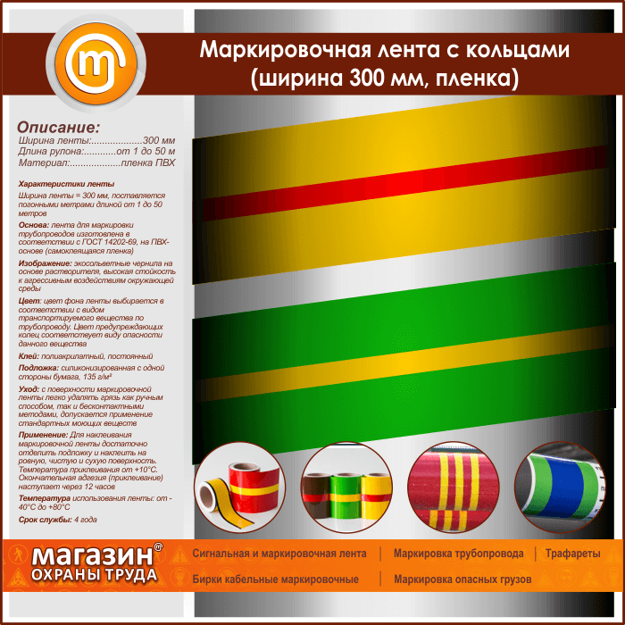 Маркировочная лента с кольцами (ширина 300 мм, самоклеящаяся плёнка) в Новокузнецке купить