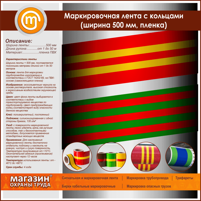 Маркировочная лента с кольцами (ширина 500 мм, самоклеящаяся плёнка) в Новокузнецке купить