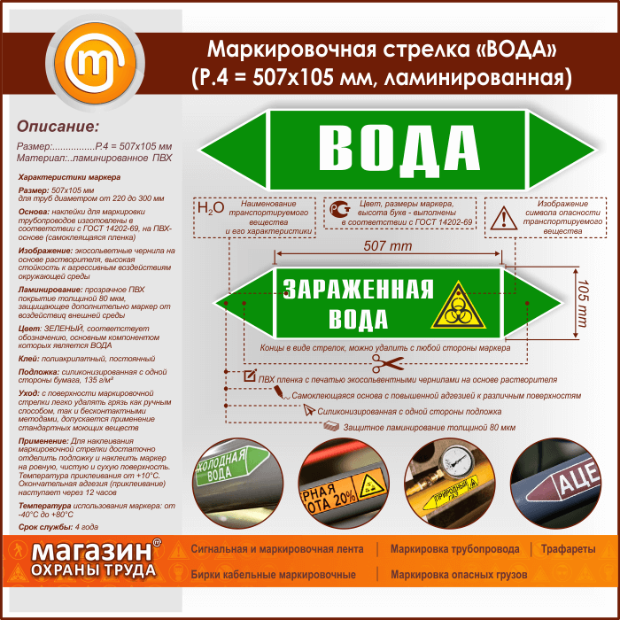 Маркировочная стрелка «ВОДА» (P.4 = 507х105 мм, самоклеящаяся плёнка с ламинированием) в Новокузнецке купить