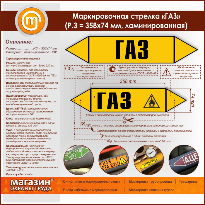 Маркировочная стрелка «ГАЗ» (P.3 = 358х74 мм, самоклеящаяся плёнка с ламинированием) в Новокузнецке купить